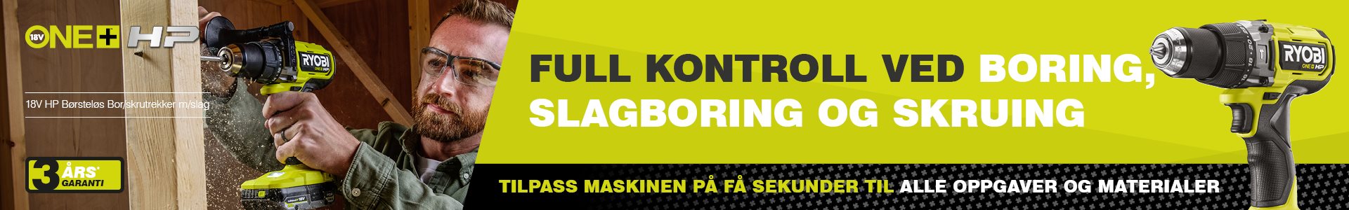 Et must for alle DIY-entusiaster. Denne batteridrevne slagdrillen gjør det enkelt å bore i tre, metall, plast og mur, og den skrur også skruer raskt inn og ut. Med hele 105 Nm dreiemoment takler Ryobi 18V ONE+™ børsteløs slagdrill tøffe jobber, og du kan bruke den med mange typer tilbehør. Den børsteløse motoren gir mer kraft og lengre brukstid.