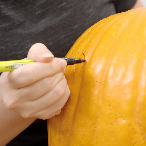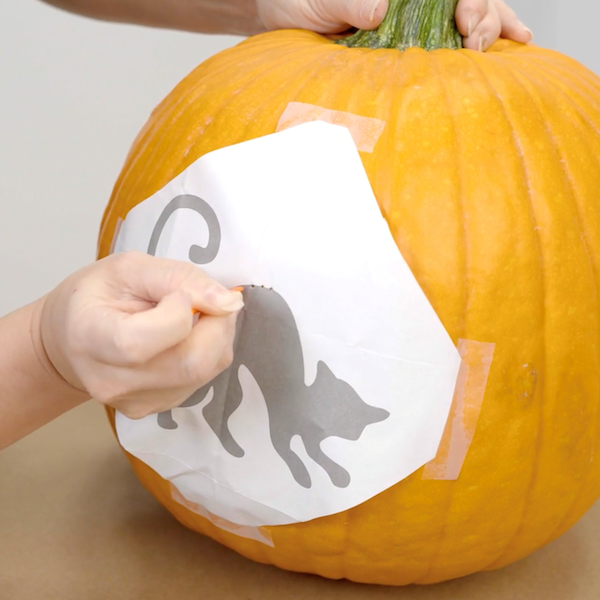 Tips: Bruk teip til å feste malen på gresskaret slik at det blir lettere å tegne av.